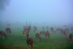 The picture prompt for the Six Minute story today is a herd of deer, of some sort, in the mist.